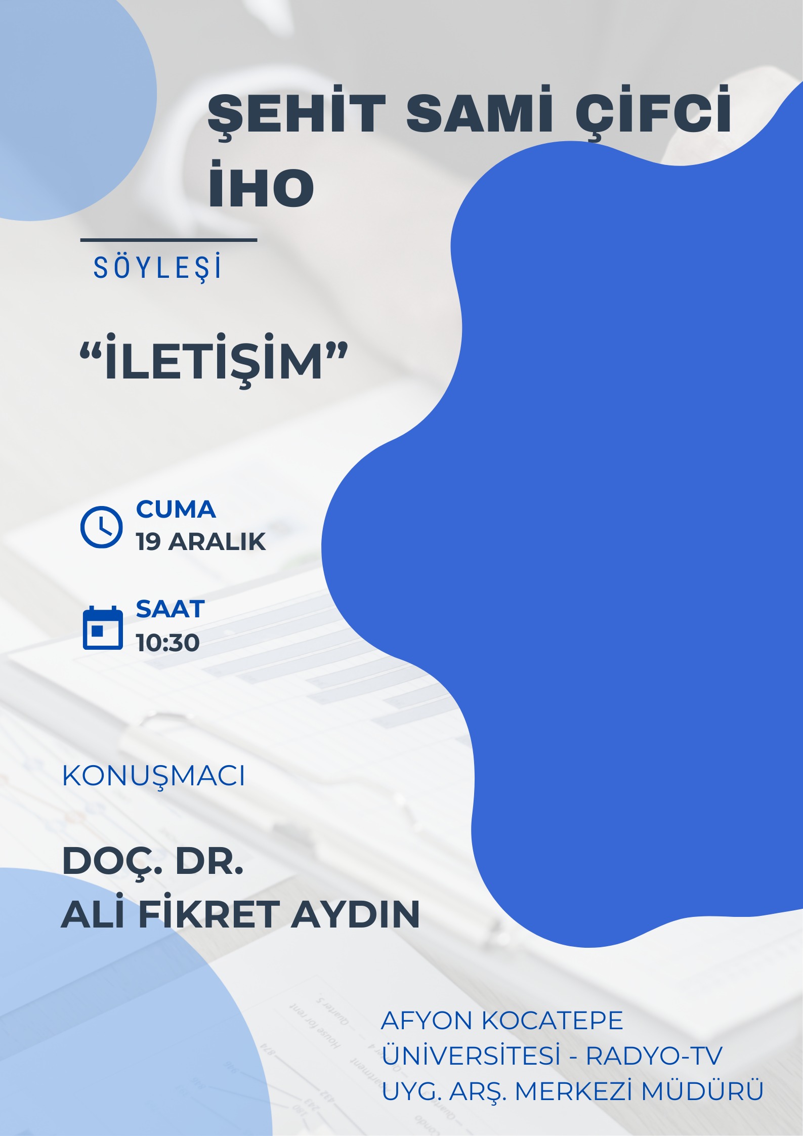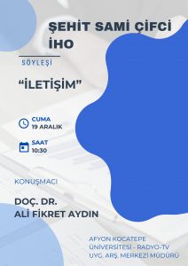 Radyo – TV Uygulama ve Araştırma Merkezi müdürü Doç.Dr. Ali Fikret AYDIN tarafından, toplumsal katkı faaliyetleri kapsamında Şehit Sami Çiftçi İmam Hatip Ortaokulu öğrencilerine yönelik “İletişim” konulu söyleşi gerçekleştirildi.